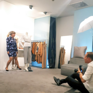 Bewaffnet mit Kamera, Blitz und natürlich zwei Paar Schuhen betraten wir am frühen Nachmittag die Räumlichkeiten von BR-Fashion in den Ringstrassen-Galerien. Unterstützt von der lieben Conny machten wir uns gleich daran, die schönsten Kleider für euch herauszusuchen. Alex baute einstweilen das Set auf und schon konnte es losgehen. Eine Stunde verbrachten wir dann damit, Kleider zu probieren, zu fotografieren und ein Gläschen Sekt zu trinken.